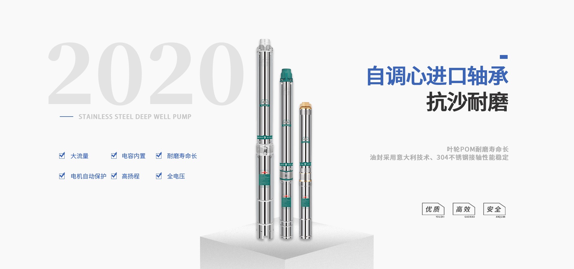 公司始終站在深井泵行業(yè)的前端位置,科研力量、產(chǎn)品和設(shè)備技術(shù)水平均達(dá)到國(guó)內(nèi)優(yōu)質(zhì)水平,公司始終堅(jiān)持走科技興企、自主創(chuàng)新的企業(yè)發(fā)展之路,產(chǎn)品不斷推陳出新,可廣泛應(yīng)用于農(nóng)業(yè)灌溉、生活用水、循環(huán)供暖、污水處理、市政供水、石油化工、冶金礦山等領(lǐng)域。